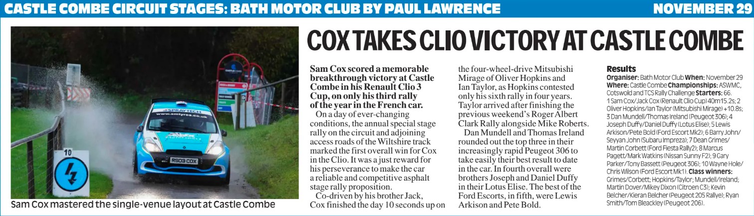 Motorsport News publish an article on the rally on December 11th (To read the article right click and open the article in another tab)