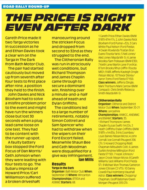 Targa In The Dark Interclub Winners Gaz Price and Ethan Davies